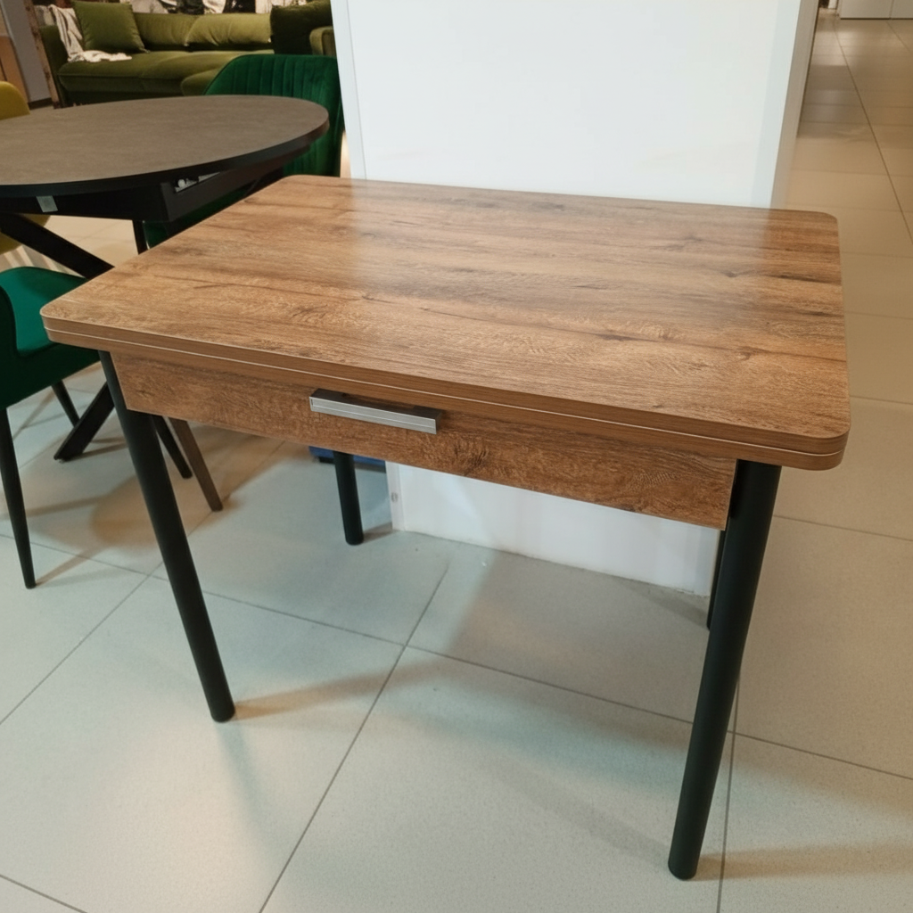 Стол СМАРТ с ящиком 900*600(+600) Дуб веллингтон/ опора №2 Черный